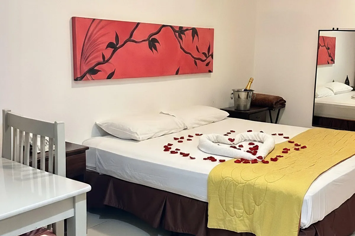 Romántico: Sorprendé a tu pareja con detalles únicos: decoración especial en la habitación, flores frescas, vino o champagne y platones de quesos preparados con esmero.